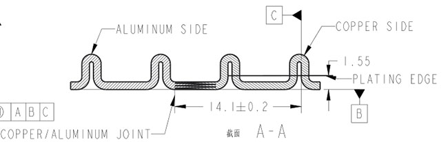 ● 鋁銅復合連接排 專為動力電池PACK設計,相比傳統(tǒng)鉚接工藝,可以大大提高功效,改善連接強度 。